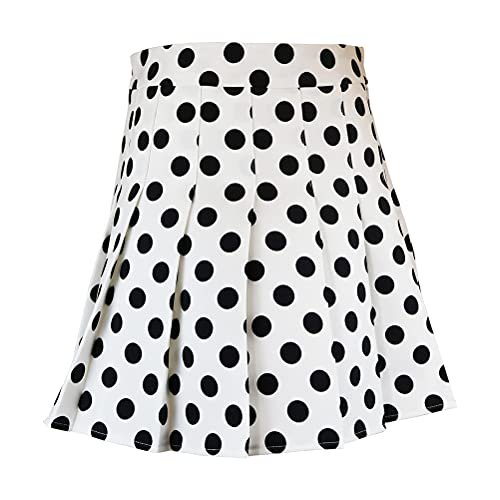 Hoerev Women Girls Short High Waist Pleated Skater Tennis Skirt White Black Dot 12 Xxxl Walmart Com